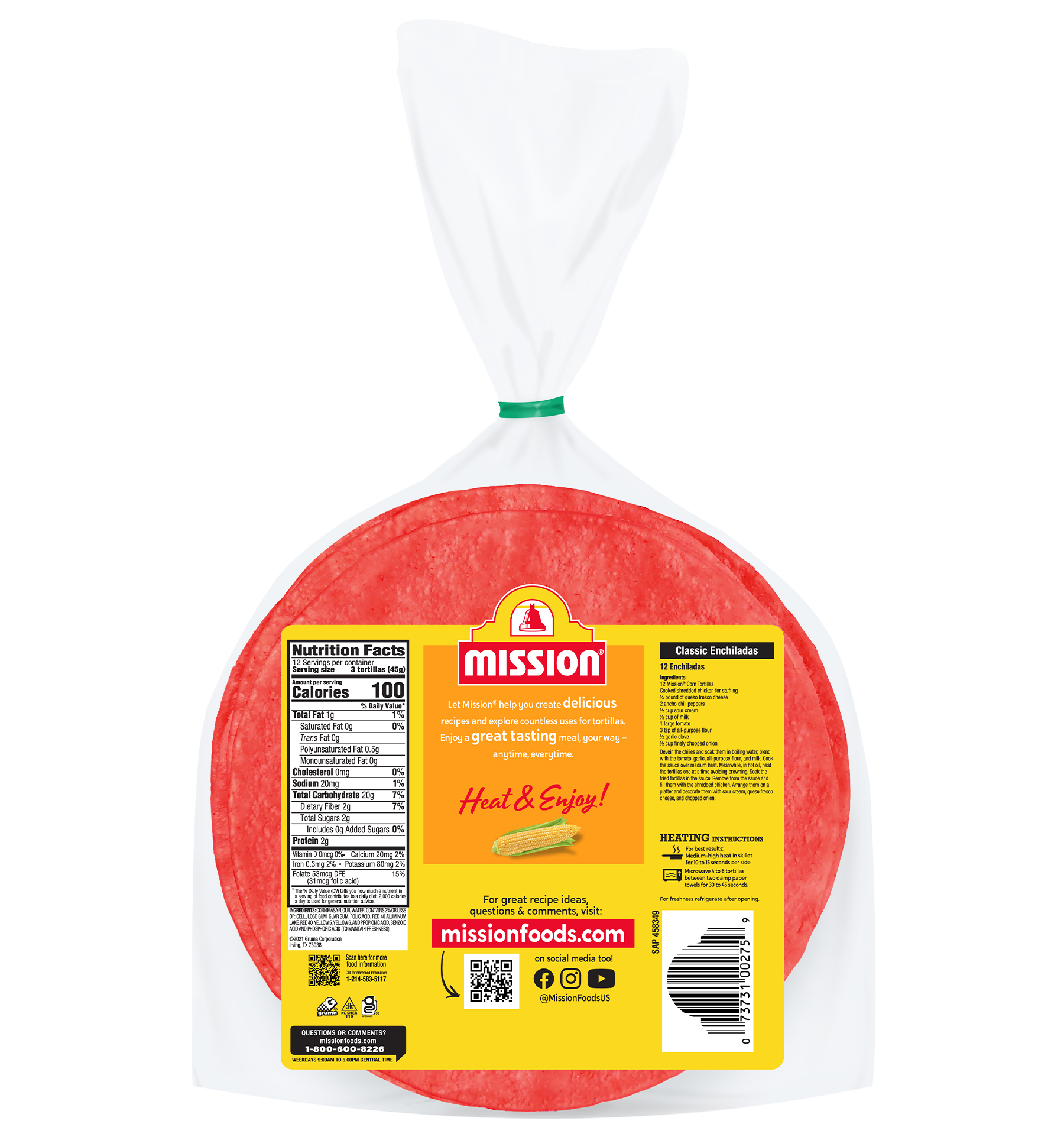 Add a pop of color to your most delectable dishes with our Mission Red Corn Tortillas. Low fat, super soft, and gluten free, these tortillas can liven up any recipe from enchiladas to tacos to chilaquiles. So whatever is on the menu, our Red Corn Tortillas are ready when you are. Tortillas range from 5.25″-5.75″.