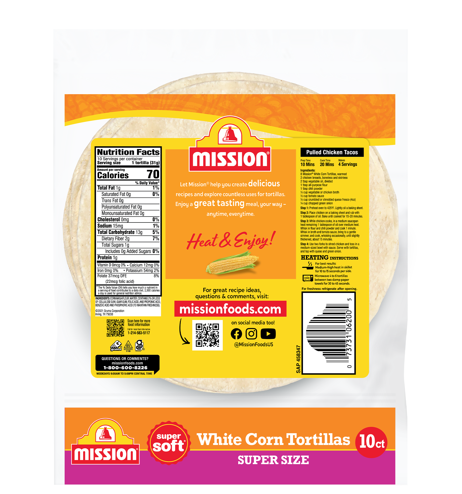 Big meals are meant to be made properly. That’s why we’ve crafted our Super Size tortillas for extra enjoyment. Made from our Maseca corn flour, we use high-quality ingredients to create authentic flavor that pairs perfectly with enchiladas, flautas, chilaquiles, or whatever it is you crave. These Super Size Tortillas are 6.5″.