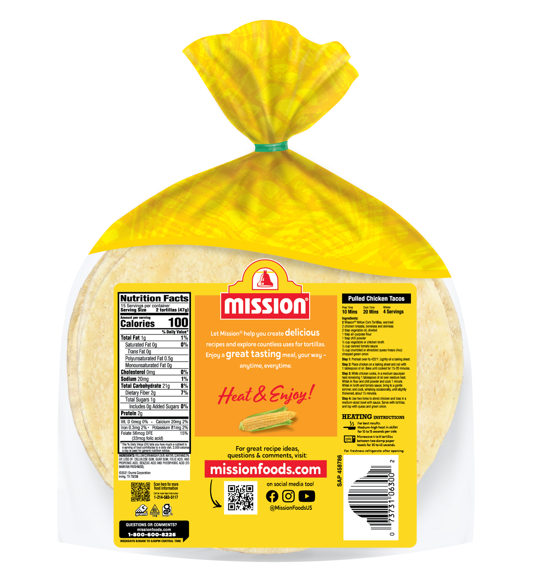Trust us – when it comes to tortillas, we know how to do corn the right way. Made from our Maseca corn flour, our Mission Yellow Corn Tortillas are filled with authentic flavor that compliments any enchilada, flauta, or Mexican dish you want to dig into. These tortillas are 5.5″.